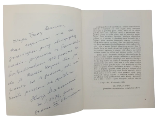 Izdanje je tiskano u Zagrebu 1936. godine te je jedan od prvih hrvatskih sportskih priručnika koji sustavno obrađuje tematiku modernih olimpijskih igara.