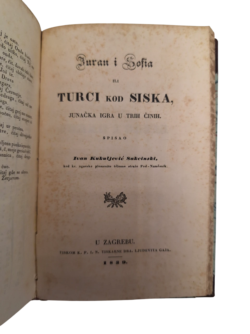 Juran i Sofija ili Turci kod Siska - Prva hrvatska štokavska dramska predstava iz preporodnog doba, a drama se odnosi na povijesni događaj hrvatske pobjede nad Turcima kod Siska 1593. godine.